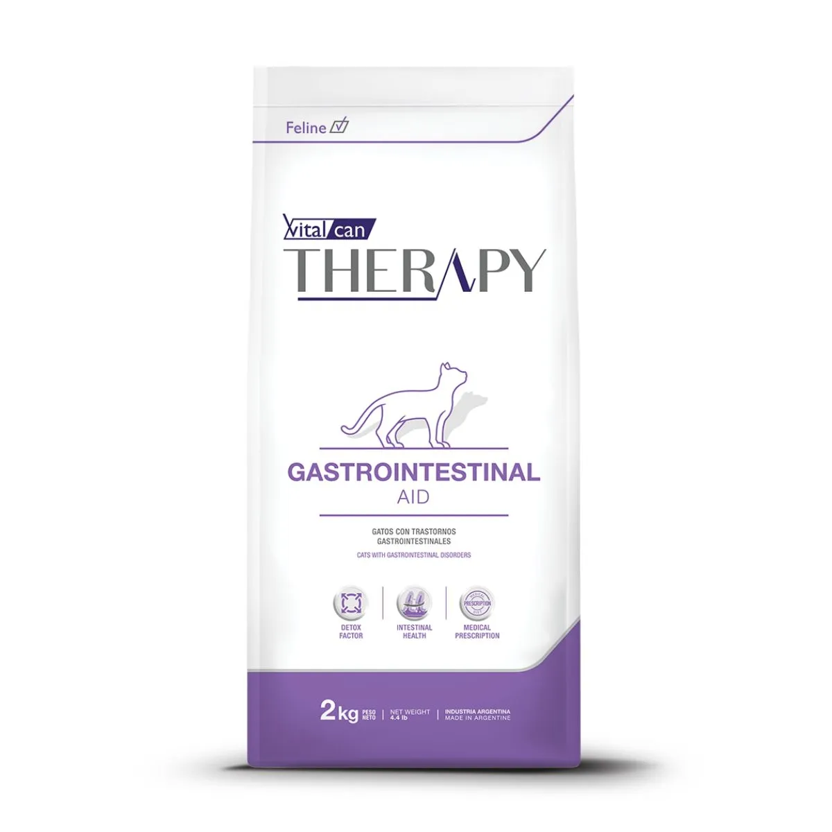 Vitalcan Therapy Gato Gastrointestinal es un alimento balanceado terapéutico para gatos de todas las edades con trastornos gastrointestinales. Formulado con ingredientes de alta digestibilidad y una combinación de extracto de alcachofa y zeolita que actúa como detoxificante natural y colabora en el control de diarreas. Además, favorece el desarrollo de las vellosidades del intestino aumentando la superficie de absorción y estimula el desarrollo de la flora intestinal benéfica.